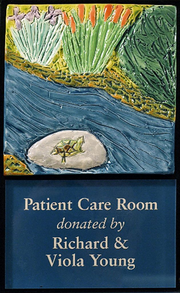 $500,000 in additional donations came in within one month of the dedication. Those donations were directly inspired by the desire to have one’s name on a rock within the mural. Over 90 naming plaques were created – every room has one. Deep satisfaction and appreciation has been voiced by donors, staff and patients. The goal of the campaign was $16 million, in the end the Hospital was able to raise $18.5 million!