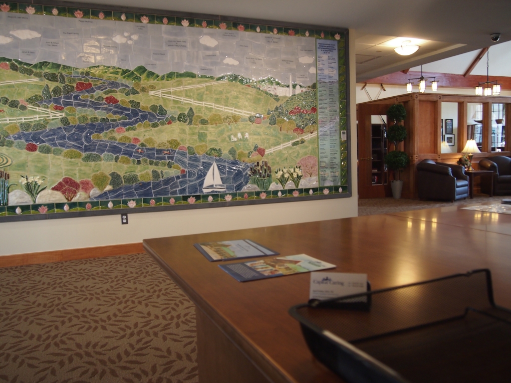 This mural is not only donor recognition, but it also provides a vibrant, colorful welcome in the foyer entrance.