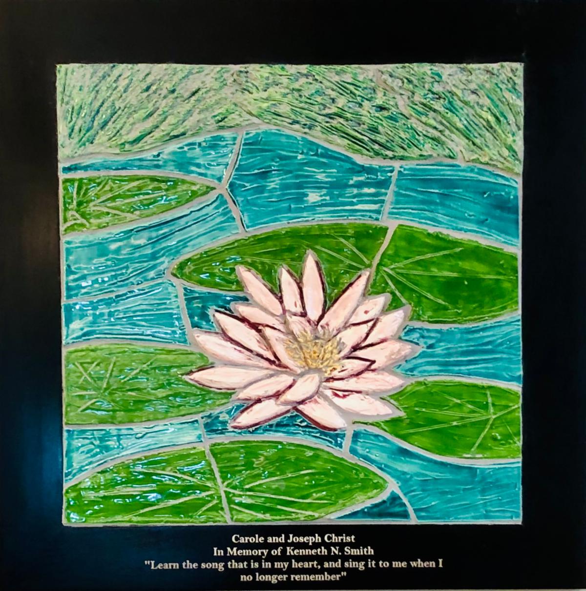 Donor names were sandblasted into the lily pads honoring the most significant levels of giving. The mural fosters a calming, soothing environment, reducing stress & anxiety for patients and their families – truly a “Sense of Peace.”