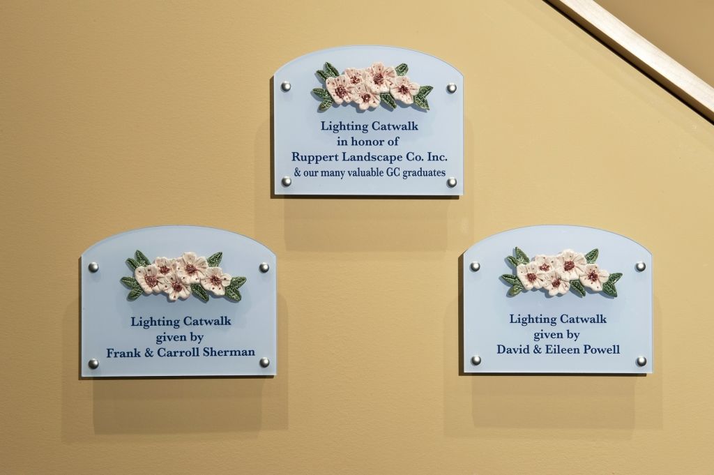 Upon completion of the donor wall, OLGC commissioned us to design and fabricate complementary room naming plaques and donor gifts.