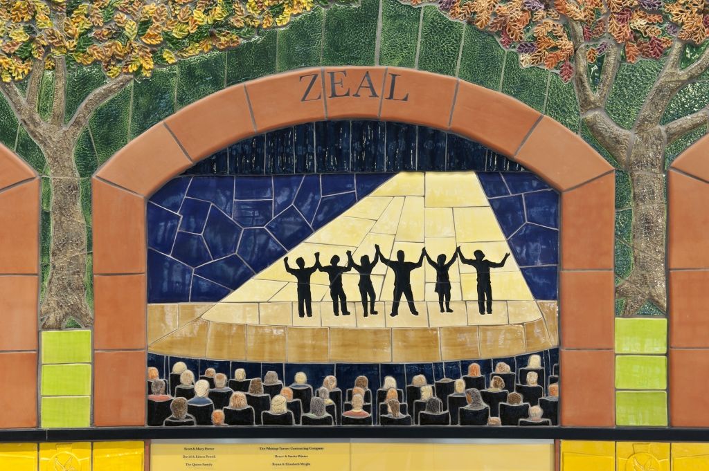 This 60′ ceramic tile mural forms the grand entry of the Performing Arts Center.