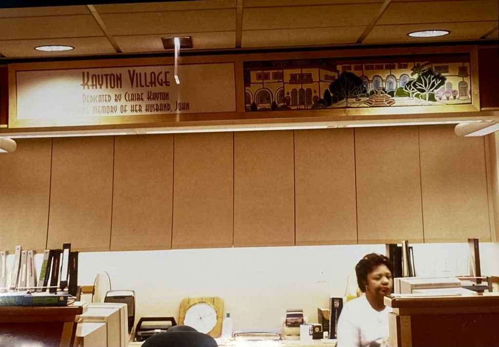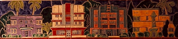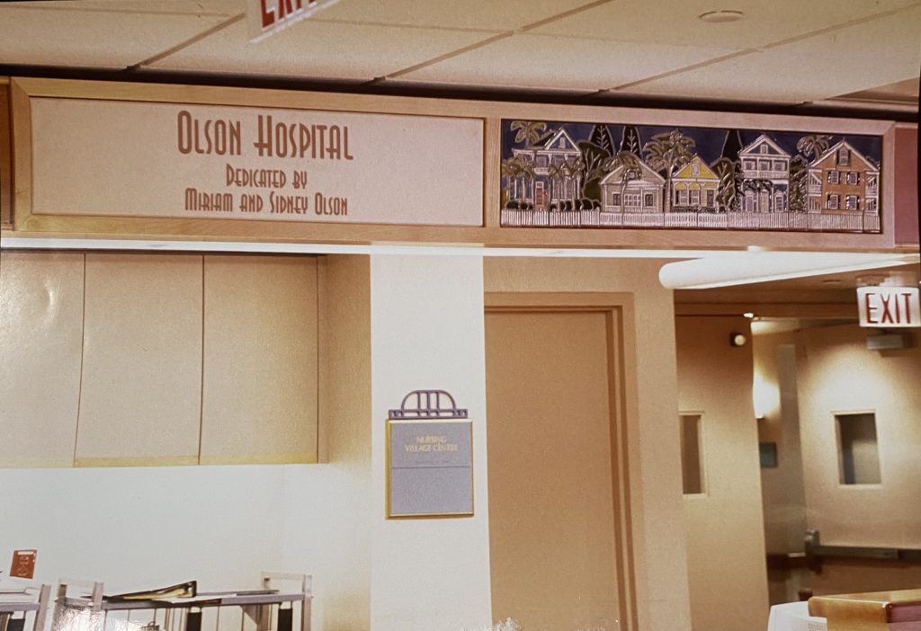 The wayfinding system consists of three floors in an eldercare facility. Each floor has a ceramic tile mural panel that depicts Florida architecture including, Key West, Miami, and South Beach.