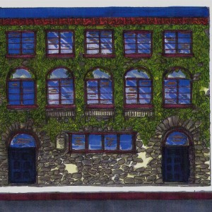 Donor wall in the form of the facade of the original building occupied by the School of Social Work. Donor names are inscribed in the window areas. The striking imagery, prominent size and high relief of this mural make it a highly visible show piece in the school’s newly renovated lobby. Matching side panels hold the names of $400+ donors, many of them alumni who are giving for the first time.